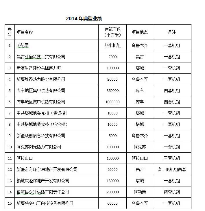 2014年度公司典型业绩表
