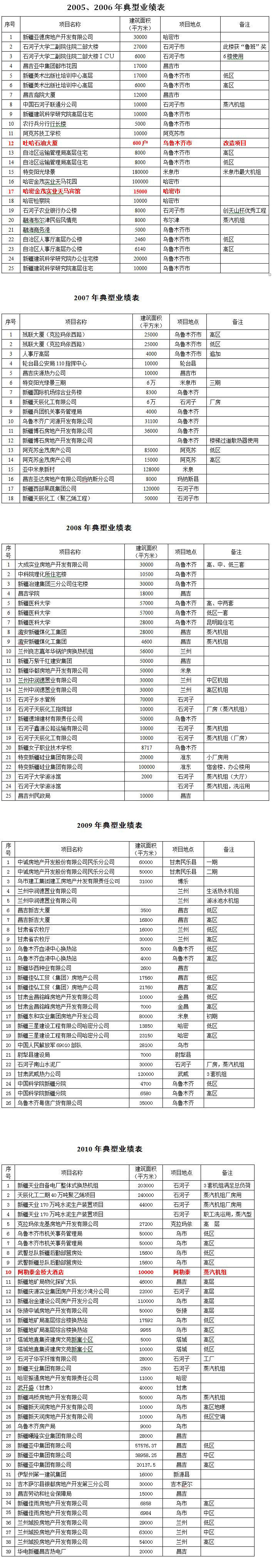 2005-2010年典型业绩表